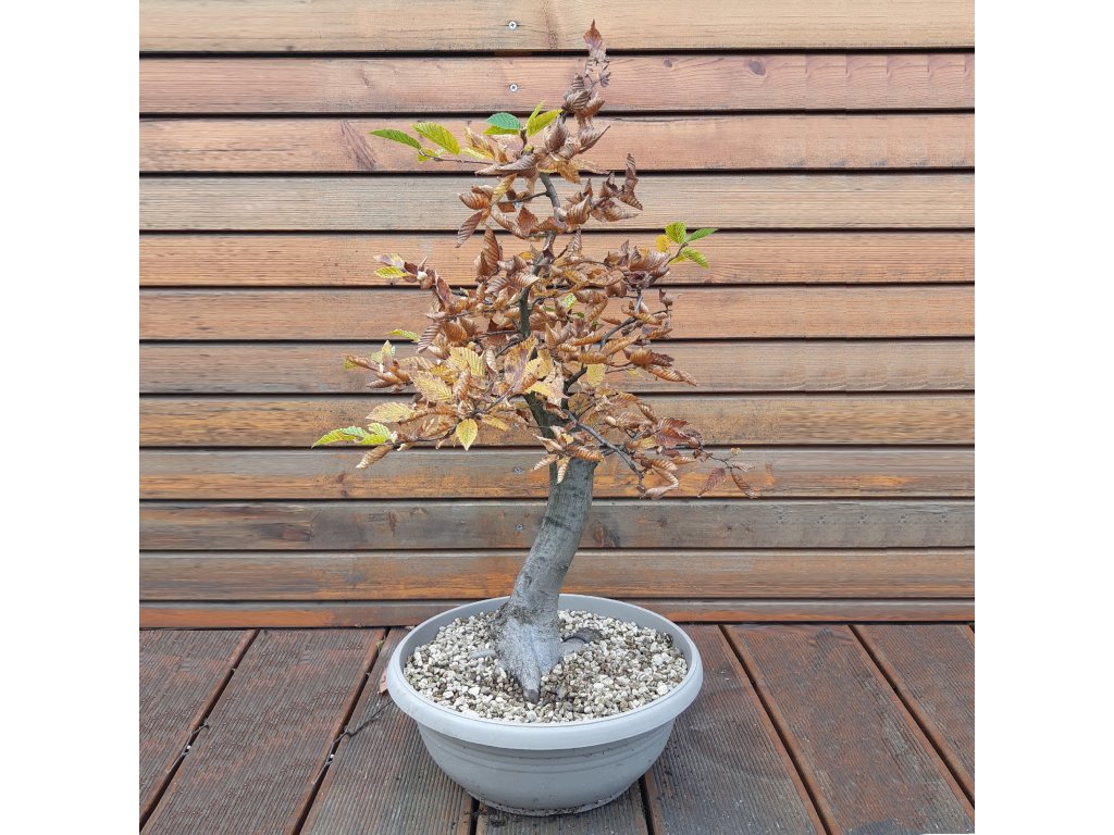 Prebonsai habru ve stylu Moyogi. Zapěstovaný strom ve skvělé kondici. Mírně zvlněný kmen, natvarováne větve prvního a druhého řádu a nádherné nebari předurčují toto yamadori pro bonsai ve volně vzpřímeném stylu.